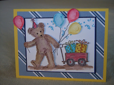I am not terribly happy with it, as I think I could have done better. What was in my head did not come out on paper. But, since I didn't get started sooner, and am rushing off to the concert, this is what I need to go with. One nice thing about this card, Mr. Dapper Snowman is struttin' his stuff with tophat and diamond buttons. He must be off to a concert tonight too -- only not of the elementary school style. I bet we have more fun.